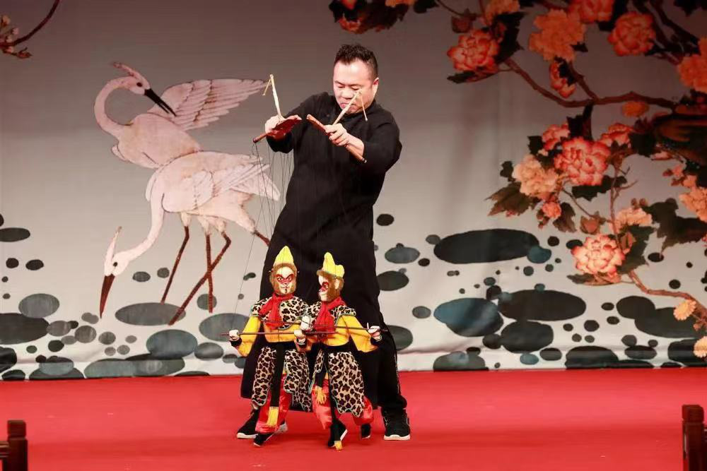 端午节假日期间,来自泰顺的木偶艺人表演了悬丝傀儡《十八相送》《真假美猴王》等。