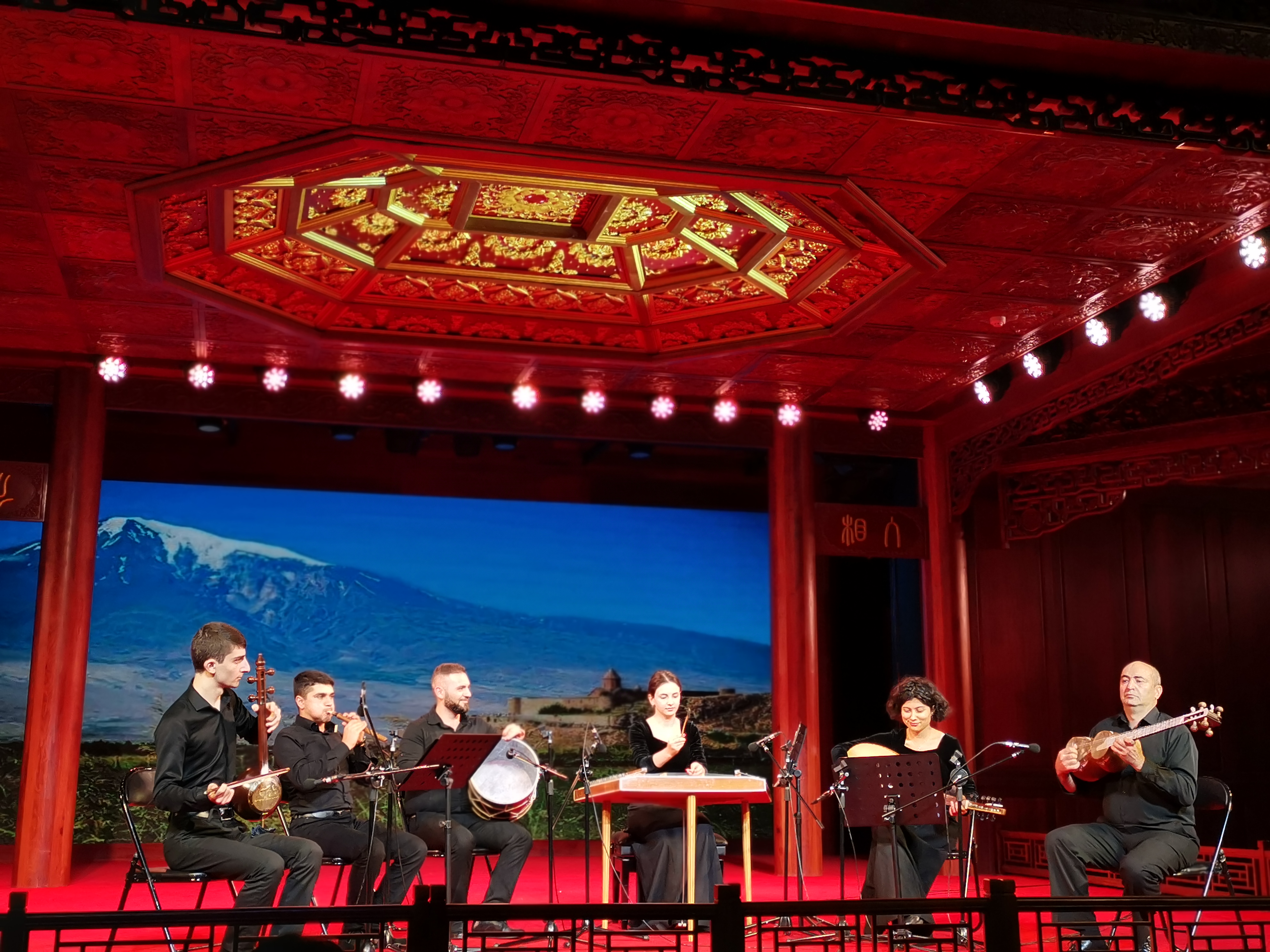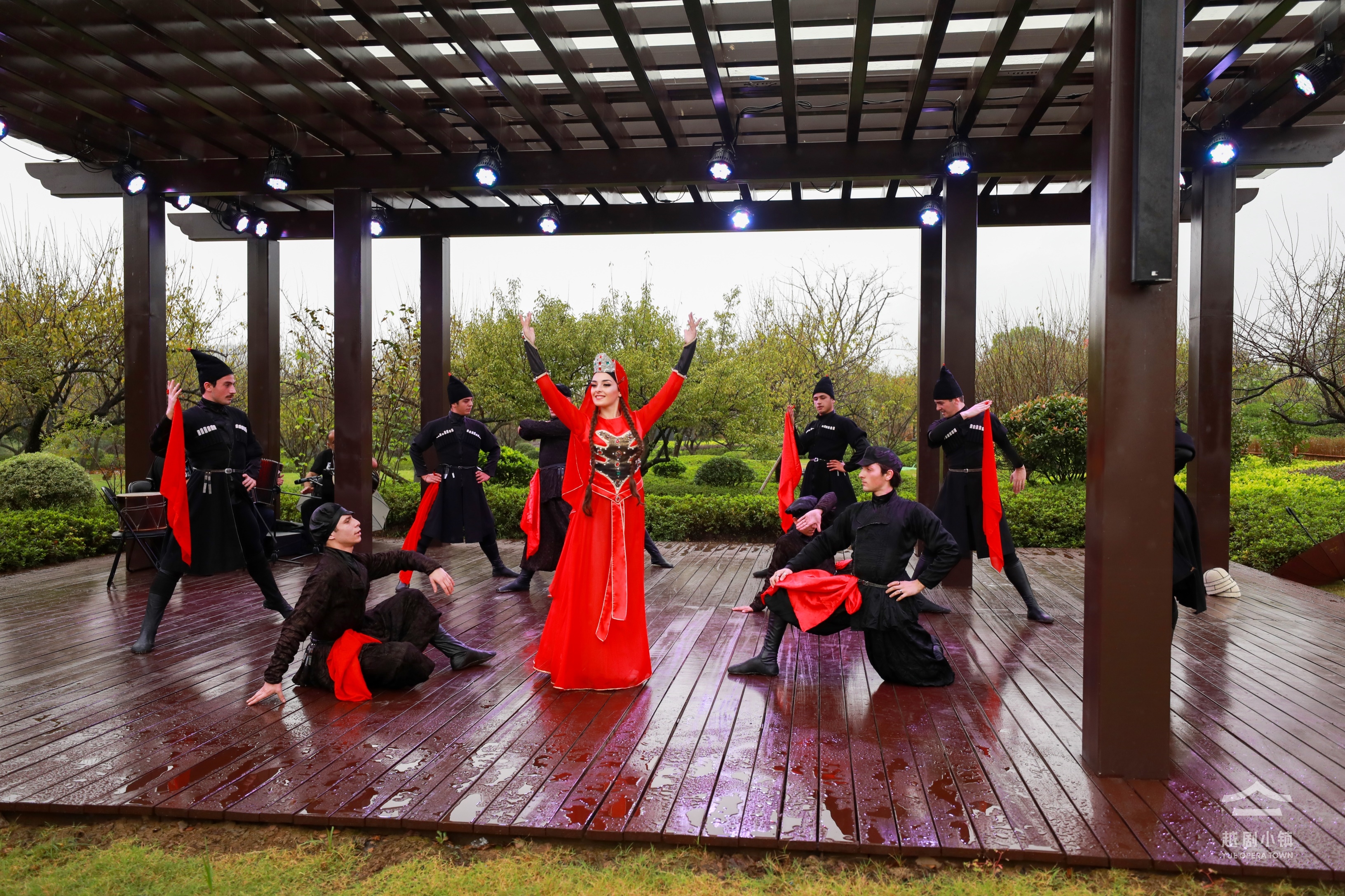 两千年的丝绸之路交汇了东西方文明,2013年启动的“一带一路”国家战略促进着当今世界经济和文化的共荣。持续地展示拥有古老文明的国家的文化艺术,是越剧小镇的愿景。在今年6月赴格鲁吉亚首都第比利斯考察其文化艺术和剧场演出之后,今年8月,国际戏剧小镇联盟主席郭小男先生和学术顾问沈林教授再次飞抵格鲁吉亚和亚美尼亚两国,达成了国庆期间的合作。内容包括:举办谢尔盖·帕拉杰诺夫影展及图片展,不但展映《石榴的颜色》《游吟诗人》和《苏拉密城堡》三部大师级导演的代表作,而且将在国内首次举办题为《艺术无国界》的图片展,包含导演的肖像照、工作照、电影剧照和他完成的拼贴画作品的图片共40幅;邀请亚美尼亚阿拉拉特乐队和格鲁吉亚巴格拉特舞蹈团到越剧小镇演出,展示亚美尼亚传统音乐和格鲁吉亚传统舞蹈的魅力;将游客大厅辟为展厅,展览亚美尼亚手织地毯、格鲁吉亚当代丝绸壁挂和格鲁吉亚葡萄酒。